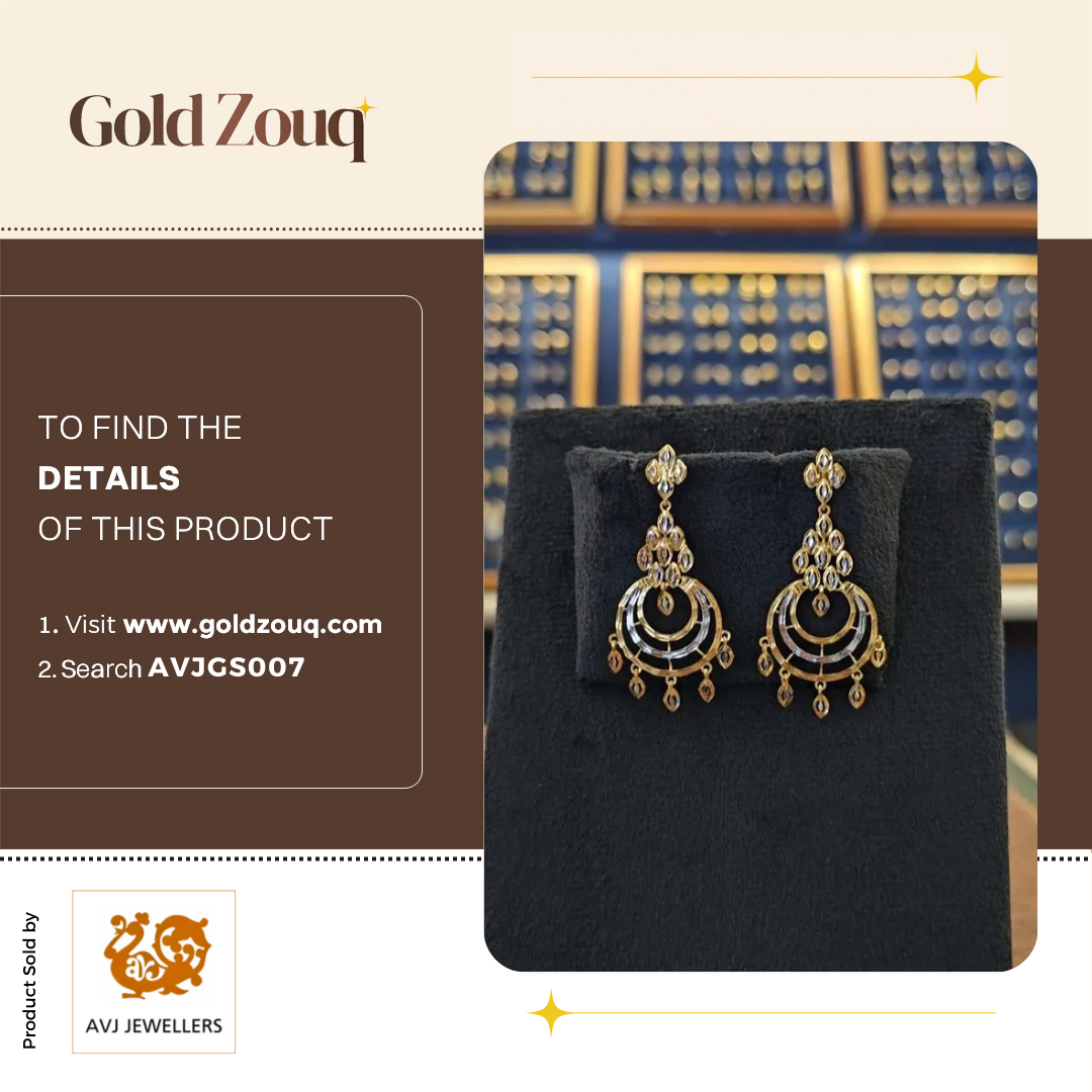 Rhodium and gold finish gold stud drops design by AVJ Jewellers Alappuzha